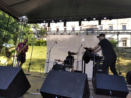 Számunkra sem maradt közömbös a pandémia negatív ereje, szeretett zenészünk, Matt Howden kénytelen volt távol maradni, nem közömbös az sem, hogy a Laibach-projekt ritkaságszámba menő fellépése is betegség miatt maradt el. Talán ezzel kapcsolatos, vagy egyéb személyes problémáink együtthatója, de egyetlen napra utaztunk a Vág völgyébe. A szervezők utaztatják a fesztivált, kastélyok és várak fogadják be a zenészeket és a közönséget évről-évre. Ezúttal Moravany nad Váhom kastélya adta a remek miliőt. A renováció nyomai már láthatóak, de alapvetően egy kopott monumentumról van szó; számomra ez nem hátrány, inkább pozitívumnak számított. A frissen bádogolt torony egykori őse pl. a fűben heverve önmagába roskadva izgalmas látvány.
