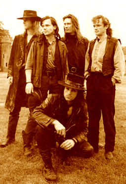 1985: Elkészül egy saját kiadású lemez, amely 500 példányban lát napvilágot, címe: Burning The Fields, melynek boritóján Carl saját festménye szerepel. Gary Wisker szaxofonos ebben az évben szakmai okokból elhagyja a bandát és ezután lép be a formációba Peter Yates gitáros. Az első pár koncert után Londonban megkapják a "Bonanza" gúnynevet mert a közönség és a kritikusok túlságosan régimódinak, röhejesnek találták ezt a cowboy stílust. /Egyébként a Bonanza név egy 70-es években Amerikában sugárzott western sorozat volt, melyben a szereplők hasonló ruhákban jelentek meg a képernyőn.