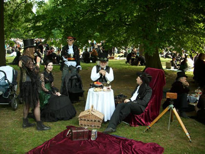 Már az első nap délutánja egy igazi csemegével szolgált, amely nem volt más, mint az évek óta ilyenkor megrendezendő Viktoriánus Piknik. A helyszín az eseménynek már korábban is otthont adó Klara Zetkin Park volt. Korábban úgy értesültem, hogy az idén egy zárt helyen rendezik majd meg ezt a délutánt, de szerencsére nem így történt. Mire kiértem a parkba úgy délután három óra után, bizony már sokan birtokukba vették a park egyik hátsó szegletében elterülő tisztás zöld gyepszőnyegét, és mint a régi időkben, elemózsiás kosárkákkal, pokrócokkal, vagy éppen székekkel érkezve láttak neki elfogyasztani az otthonról hozott finomságokat és persze italokat is.